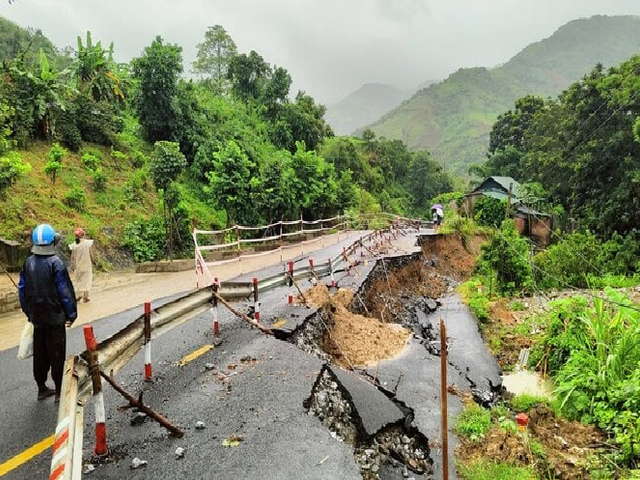 Sạt lở kéo dài hàng trăm mét, nhiều tuyến đường ở Thanh Hóa, Nghệ An ách tắc