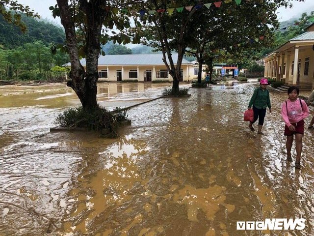 Cơn lũ quét qua trong đêm khiến một số bản làng, trường học ở xã Yên Tĩnh (huyện Tương Dương, Nghệ An) bị vùi trong bùn đất.