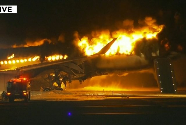 Máy bay của hãng hàng không Japan Airlines (JAL) bốc cháy sau khi nghi va chạm với máy bay cảnh sát biển tại Haneda.