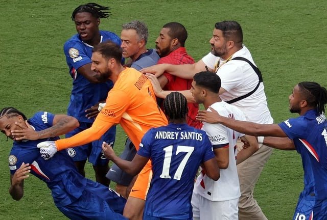 Huấn luyện viên Luis Enrique đánh vào mặt tiền đạo Joao Pedro của Chelsea sau trận chung kết FIFA Club World Cup 2025.