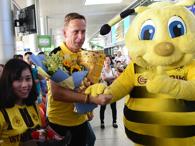 Sáng 21/9, huyền thoại Joerg Heinrich của Borussia Dortmund đã có mặt tại Việt Nam cùng chiếc cúp Quốc gia Đức.
