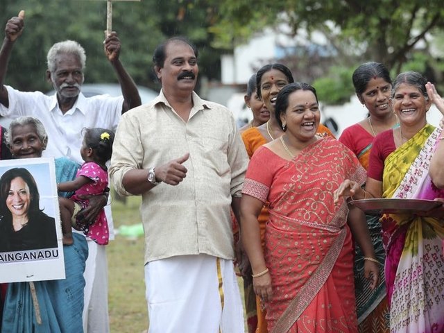Tại làng Thulasendrapuram thuộc bang Tamil Nadu, nơi từng là nhà của ông ngoại Kamala Harris, người dân ăn mừng bằng đốt pháo, cầu nguyện tại các ngôi đền lớn và vẫy những tấm poster có hình Phó tổng thống đắc cử.