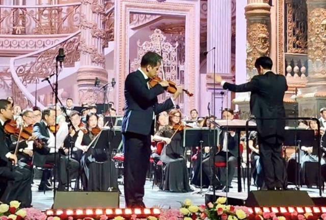 NSND Bùi Công Duy có màn trình diễn ấn tượng bản Concerto dành cho violin của nhà soạn nhạc Felix Mendelssohn trong hòa nhạc hữu nghị Việt Nam - Kazakhstan.