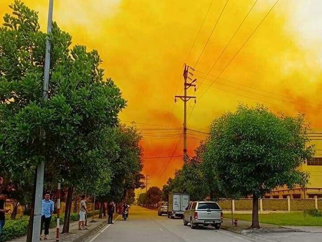 Bầu trời phủ một màu vàng khi doanh nghiệp gặp sự cố, chưa rõ hóa chất gì