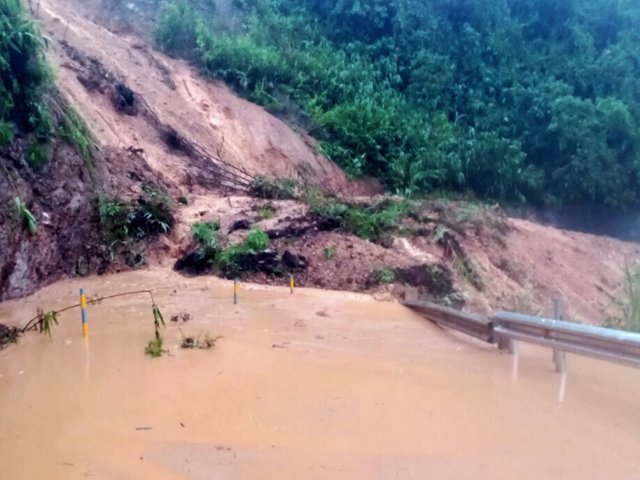 Cơ quan chức năng bố trí lực lượng và biển cảnh báo tại 2 đầu điểm sạt lở để cảnh báo, ngăn chặn các phương tiện giao thông qua khu vực này.