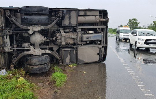 Lúc bị lật, trên xe khách đang chở hơn chục người. Hành khách la hét thất thanh rồi cùng tài xế đập kính chắn gió chui ra ngoài giữa lúc trời đang mưa.