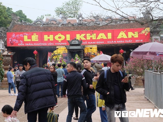 Lễ khai ấn vừa kết thúc lúc nửa đêm 14 tháng Giêng, du khách ùn ùn kéo vào đền Trần dùng tiền, sớ xoa vào bảo kiếm, chuông đồng để cầu tài lộc.