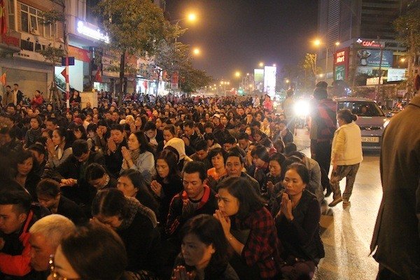 Người dân xếp hàng nhiều giờ trong đêm chờ phát ấn ở đền Trần