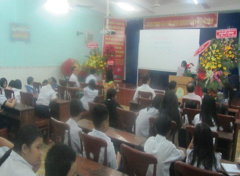 Lễ khai giảng đặc biệt này được tổ chức vào ban đêm, của thầy trò Trường phổ cập giáo dục phường 12, quận Bình Thạnh, nơi các em học sinh có hoàn cảnh đặc biệt.