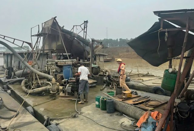 Quá trình kiểm tra hoạt động khai thác cát tại khu vực sông Cầu, cảnh sát phát hiện 4 tàu vi phạm an toàn giao thông, trong đó 3 tàu không có đăng ký và đăng kiểm.