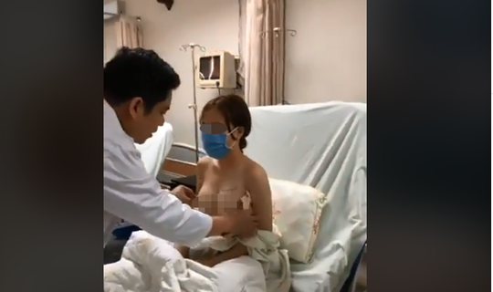 Một video clip cận cảnh bác sĩ khám ngực, hướng dẫn nữ bệnh nhân chăm sóc bộ ngực mới nâng đang gây tranh cãi trên mạng xã hội facebook.