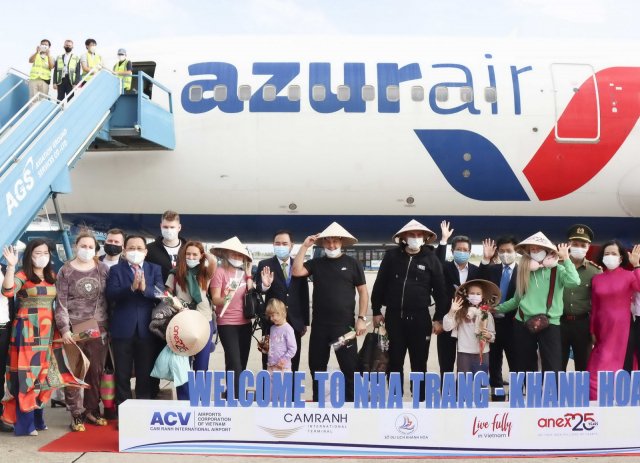325 người Nga đầu tiên có “hộ chiếu vaccine” đã đến Khánh Hòa trên chuyến bay ZF743 của Hãng hàng không Azur Air đáp xuống sân bay quốc tế Cam Ranh sáng ngày 26/12.