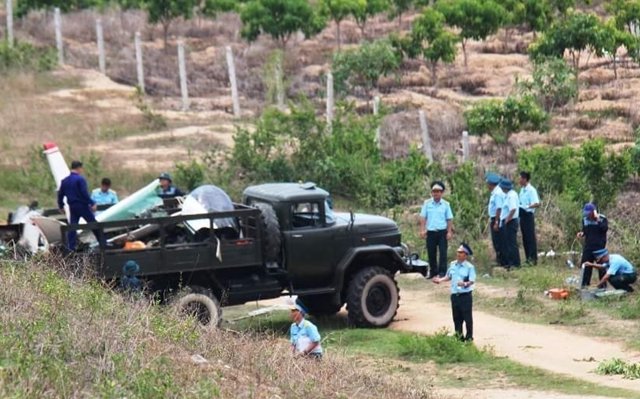 Trưa 14.6, PV Lao Động có mặt tại hiện trường vụ máy bay quân sự (thuộc trường Sỹ quan Không quân) tại chân hồ Suối Tân (xã Suối Tân, huyện Cam Lâm, Khánh Hòa). Lúc này, công tác thu gom xác máy bay vỡ đang diễn ra.