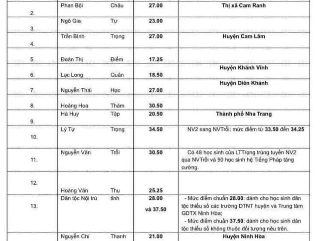 Ngay sau khi sở GD-ĐT Khánh Hòa công bố điểm thi lớp 10 đã xuất hiện bảng điểm chuẩn vào Trường THPT Lê Quý Đôn và 20 trường khác ở địa phương này.