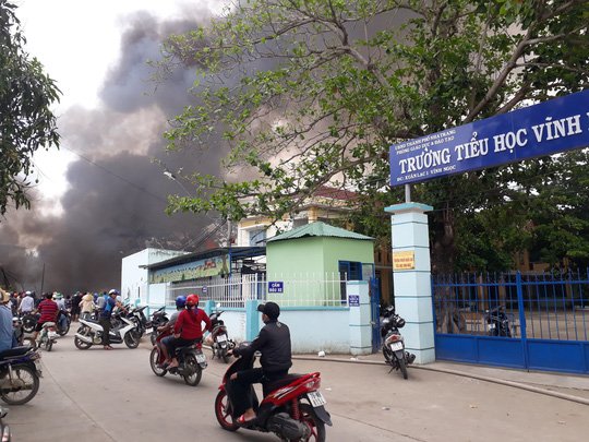 Khói mù mịt, bốc mùi khét lẹt từ vụ cháy bãi phế liệu khiến hơn 500 học sinh trường Tiểu học Vĩnh Ngọc (TP Nha Trang, tỉnh Khánh Hòa) phải nghỉ học