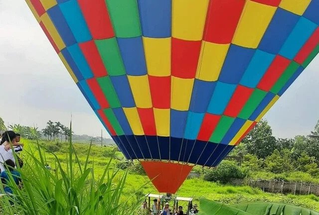 Khinh khí cầu chở 9 người đáp xuống ruộng lúa ở Hà Nội