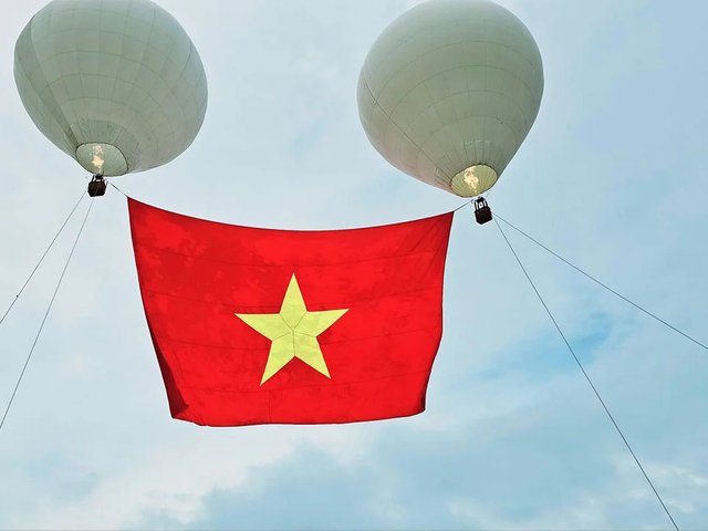 2 khinh khí cầu lớn nhất đã được dùng để kéo đại kỳ lớn 1.800m2 lên nền trời chào mừng ngày Quốc khánh 2/9 tại TP. Hồ Chí Minh.