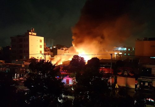 Khu dân cư Sài Gòn náo loạn vì kho vải cháy ngùn ngụt