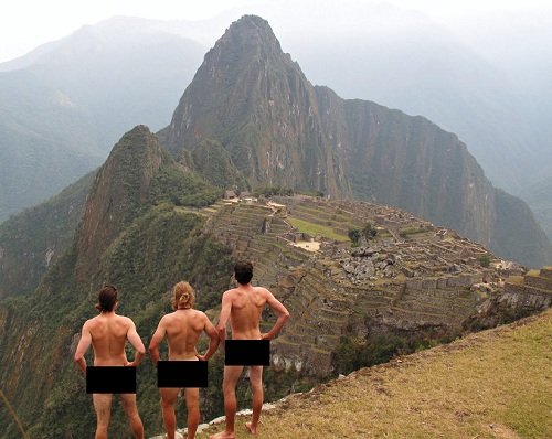 Peru cấm khỏa thân ở Machu Picchu nhưng ba thanh niên nước ngoài vẫn tạo dáng khoả thân chụp ảnh tại đây.