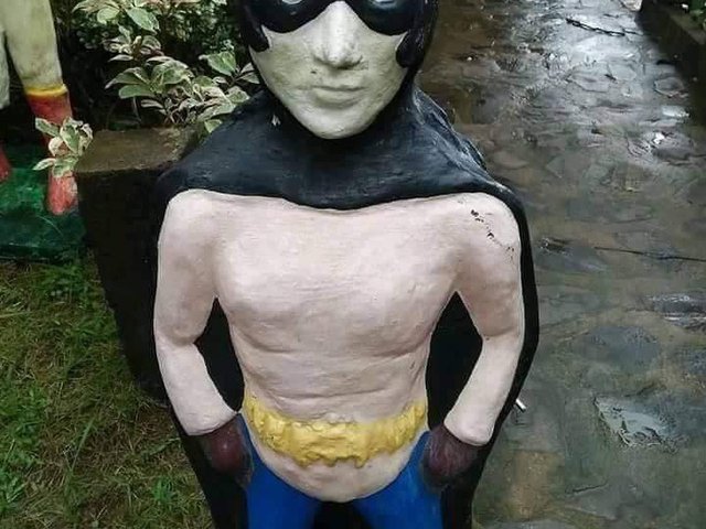 Bức tượng mô phỏng các siêu anh hùng xuất hiện trong loạt phim bom tấn của Hollywood đồng loạt xuất hiện trong một công viên giải trí, nhưng được tạo hình rất “ngô nghê” khiến du khách phải bật cười.