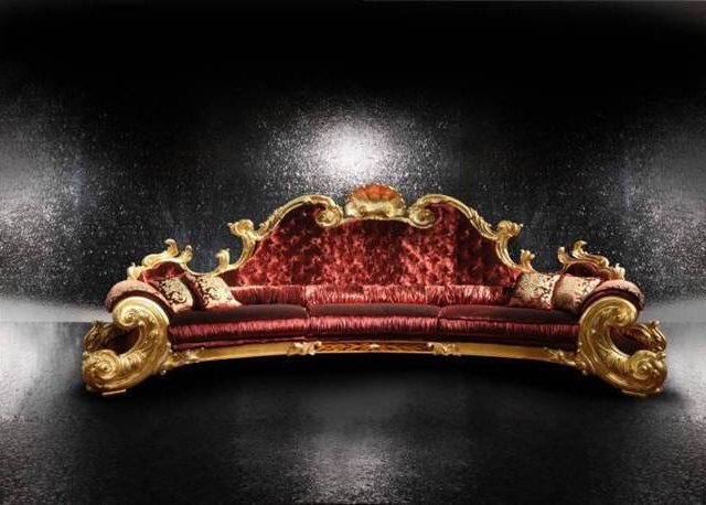 Chiếc ghế nổi bật với phần nhung đỏ nhưng các chi tiết dát vàng làm tăng lên sự sang chảnh của nó.