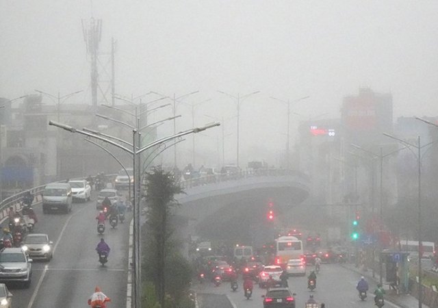 Sáng 22/10, lớp sương mù dày đặc khiến nhiều nhà cao tầng ở Hà Nội "mất nóc", phương tiện tham gia giao thông trên đường bị hạn chế tầm nhìn.