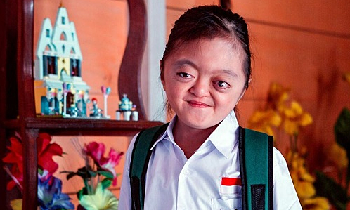Karinia Komaling (8 tuổi, ở Indonesia) không có ngón tay và chân bẩm sinh, nhưng vẫn đi học, vui vẻ hòa nhập cộng đồng, dù bị chế giễu.