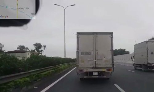 Xe của Cục Cảnh sát giao thông phát tín hiệu ưu tiên trên cao tốc Pháp Vân - Cầu Giẽ (Hà Nội), tuy nhiên tài xế xe tải phớt lờ.