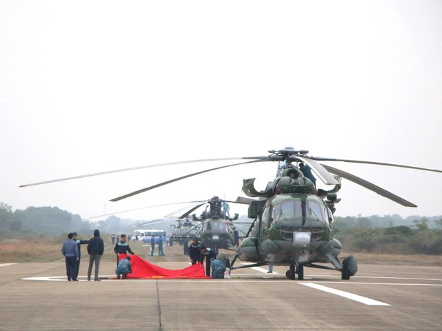 Tại lễ khai mạc Triển lãm Quốc phòng quốc tế Việt Nam 2024, lực lượng không quân tham gia trình diễn ngoài những chiếc tiêm kích Su-30MK2 còn có 7 trực thăng họ Mi.