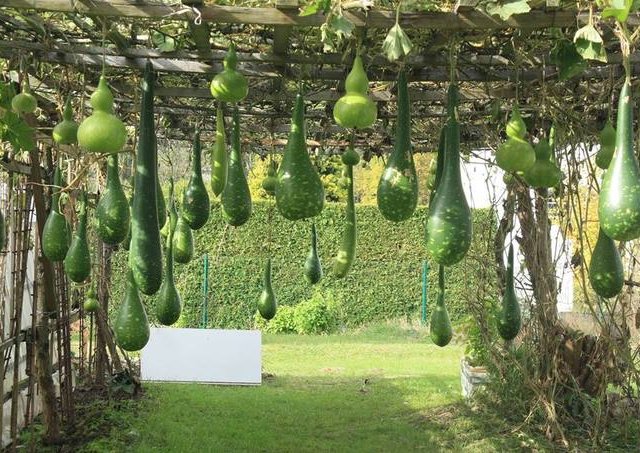 Sau 6 năm cải tạo từ đất hoang, giàn bí nhà ông Sáng năm nay thu hoạch gần 100 quả, giàn bầu vài trăm quả.
