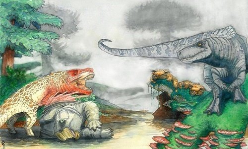 Cá sấu Rauisuchian sinh sống cách đây 210 triệu năm là sát thủ đáng sợ đối với khủng long ăn cỏ trên đất liền.