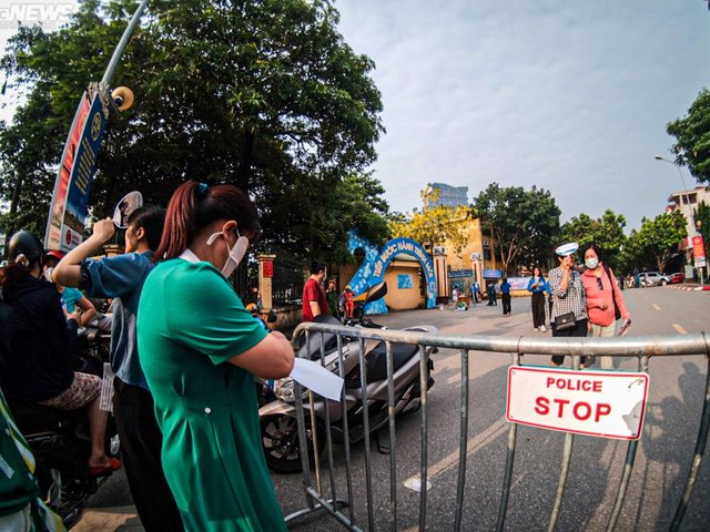 Nắng nóng, phụ huynh vẫn kiên nhẫn đợi con thi vào lớp 10 ở Hà Nội