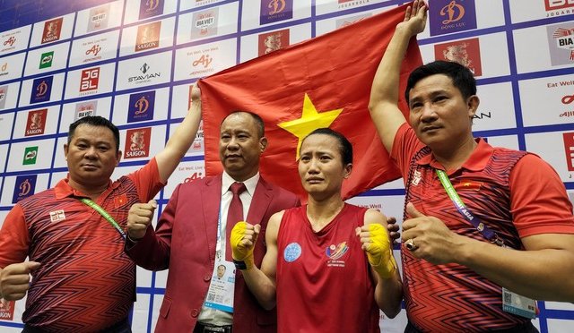 Ba võ sỹ Huỳnh Văn Tuấn (51kg nam), Nguyễn Thị Hằng Nga (48kg nữ), Huỳnh Thị Kim Vàng (65kg nữ) thay nhau đăng quang nội dung sở trường, giúp đoàn Việt Nam có 22 HCV.