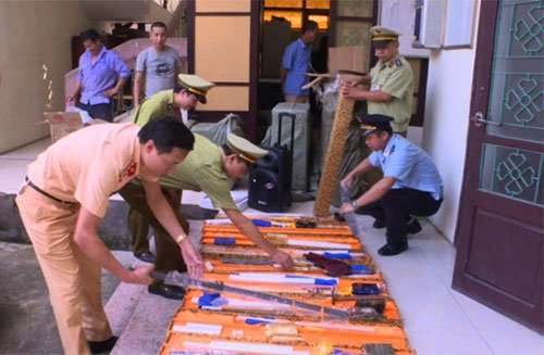 Nhà chức trách tỉnh Bắc Ninh đã tịch thu 20 thanh kiếm cùng nhiều hàng hóa không giấy tờ hợp lệ trên chiếc xe tải.