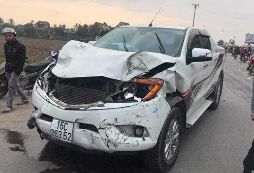 Chiếc xe bán tải đâm hai học sinh lớp 9 trường THCS Đại Hà (huyện Kiến Thụy, Hải Phòng) tử vong rồi bỏ chạy và chỉ dừng lại khi đâm vỡ phần đầu một chiếc taxi...