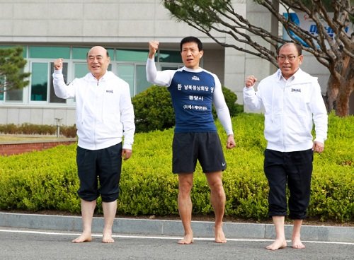 Người đàn ông Hàn Quốc 51 tuổi chạy chân đất hàng trăm cây số trong 10 ngày để bày tỏ ước mong hội nghị liên Triều thành công.