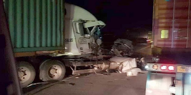Container bị biến dạng sau khi đâm vào xe tải chở cột bê tông trên Quốc lộ 5