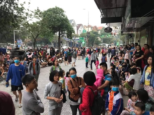 Khi thấy khói bốc ra dữ dội tại một căn hộ ở tầng 33, chung cư HH1B Linh Đàm, kèm với đó chuông báo cháy kêu lên khiến mọi người vội vã tháo chạy xuống đất.