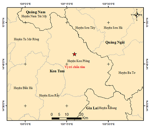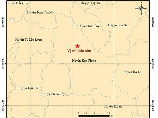 Một trận động đất cường độ 3,3 richter vừa xảy ra vào sáng sớm ngày 30/8 trên địa bàn huyện Kon Plông, Kon Tum.