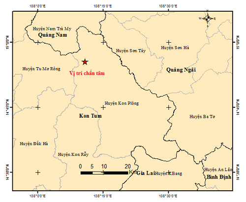 Chưa đầy 2 tiếng đồng hồ, Kon Tum xảy ra 4 trận động đất