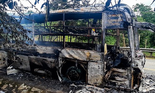 Ôtô giường nằm cháy trơ khung ở Kon Tum