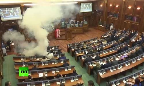 Các nghị sĩ đối lập Kosovo dùng lựu đạn hơi cay để làm gián đoạn phiên bỏ phiếu thông qua thỏa thuận biên giới với Montenegro tại quốc hội nước này.
