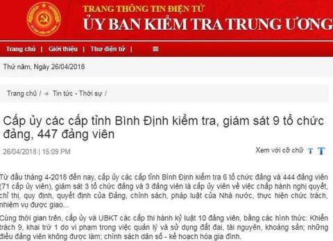 Bình Định kỷ luật 10 Đảng viên vi phạm quản lý