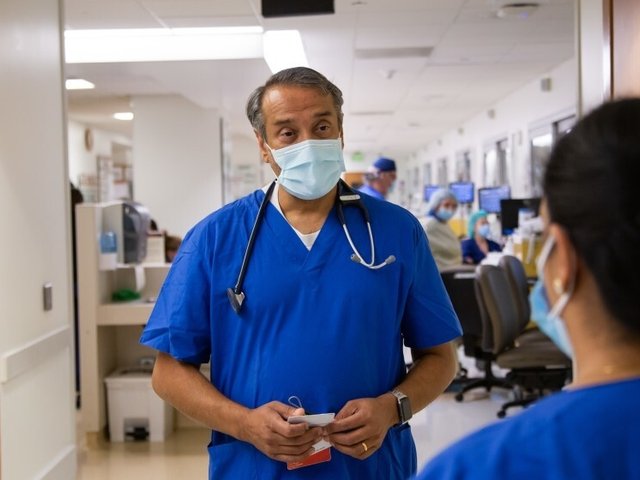Mắt trũng sâu, mệt mỏi, bác sĩ Adupa Rao vẫn làm việc không ngơi nghỉ vào những ngày cuối năm do làn sóng bệnh nhân Covid-19 ồ ạt nhập viện.
