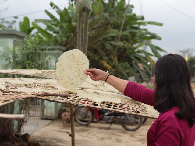 Về làng bánh đa sắn Hùng Sơn những ngày này, đâu đâu cũng thấy bà con tất bật, người tráng bánh, người phơi bánh rồi đóng gói. Thế nhưng không ai ngờ, nhờ món ăn dân dã này mà vào mùa vụ có hộ thu nhập mỗi tháng từ 10- 12 triệu đồng.