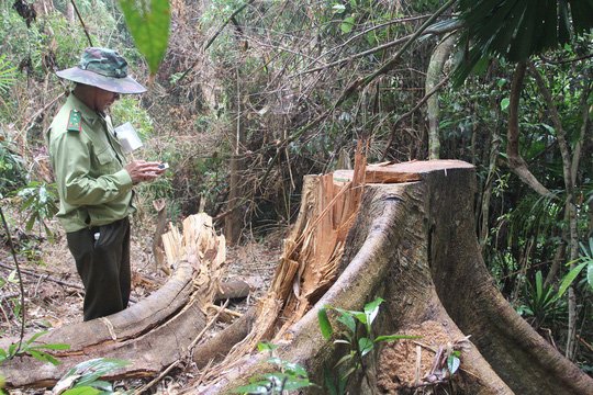 Lâm tặc chọn những cây gỗ lớn, chặt hạ suốt thời gian dài ở rừng phòng hộ Sông Kôn (Quảng Nam) nhưng không bị phát hiện.