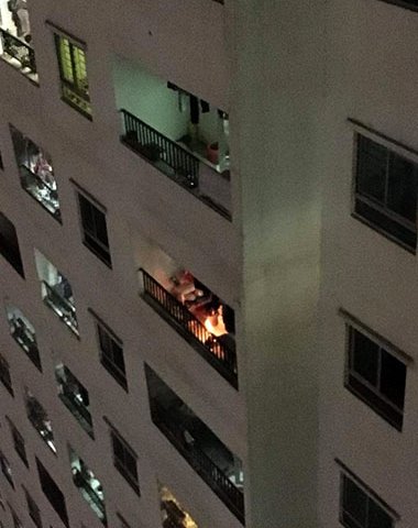 Nam sinh viên đốt vàng mã cháy nghi ngút ở lan can chung cư