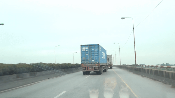 Những chiếc container lấn làn, vượt ẩu trên quốc lộ 5 (đoạn đi qua Hưng Yên, Hải Dương) khiến người đi đường kinh hãi.