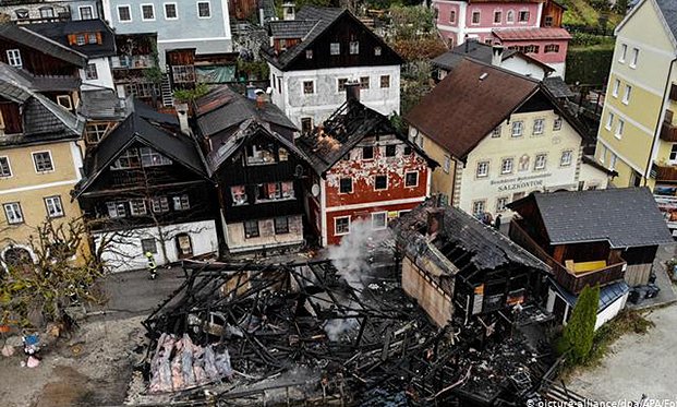 Đám cháy lớn đã làm hư hại một phần thị trấn Hallstatt. Du khách được khuyến cáo không nên đến đây trong thời gian này.
