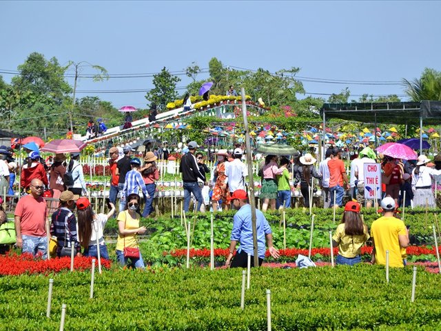 Với lượng khách đổ về quá lớn, ngay trong ngày đầu năm 2020, du khách đến Làng hoa Sa Đéc (TP. Sa Đéc – Đồng Tháp) phải nhích từng nước một.